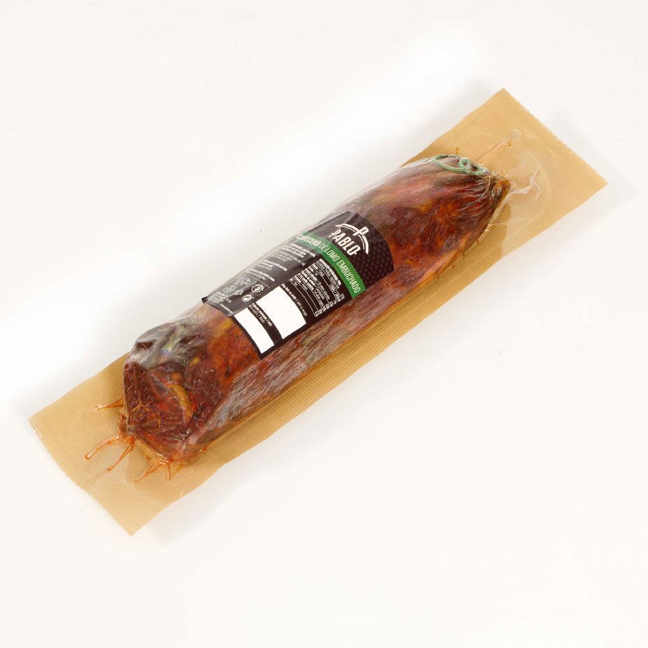 Piezas de cabecero de lomo curado casero, embutido en tripa natural, con un agradable sabor y fino veteado.