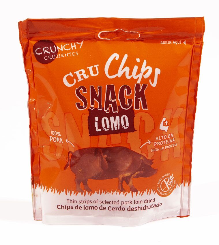 Snack de lomo deshidratado, que por su alto contenido en proteínas, y por su facilidad de conservación en temperatura ambiente, lo hace idóneo como un snack saludable para consumir en cualquier momento.