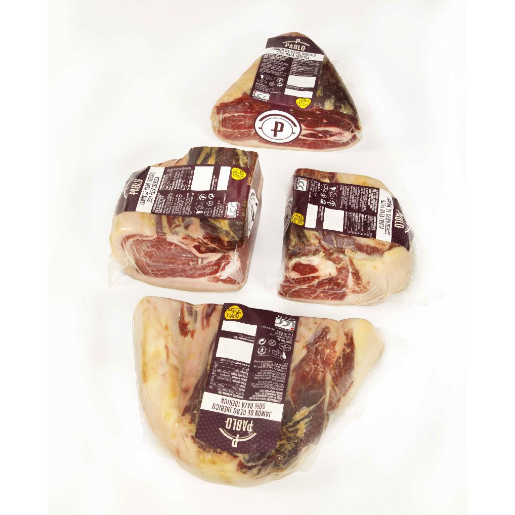 Centros de Jamón de cebo Iberico 50% raza Iberica cortados en 4 trozos para una mejor manipulación y para poder cortar el producto de la misma forma que si se realizase a cuchillo.