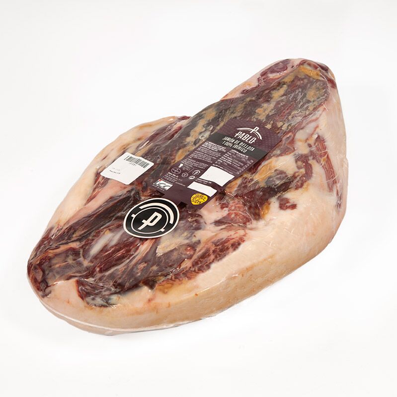 Centros y medios centros de jamón ibérico de bellota donde deshuesamos, limpiamos y pulimos los jamones, les damos un suave prensado en forma de pera, y lo envasamos al vacío. Se obtiene un formato de alto rendimiento para el loncheado, con un mínimo desperdicio, conservando el aspecto y forma natural de la loncha. El corte de este producto se recomienda hacerlo a máquina. Estas piezas se envasan al vacío y tienen un peso de unos 5kg.