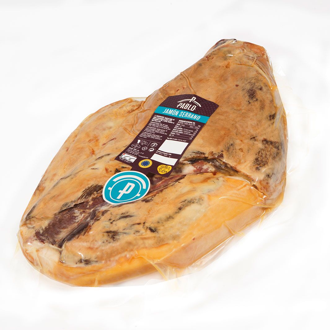 Centros y medios centros de jamón serrano, deshuesado al que le aplicamos un suave prensado que le da forma de pera y mejora su aprovechamiento. Estas piezas tienen un peso de 6 a 7kg.